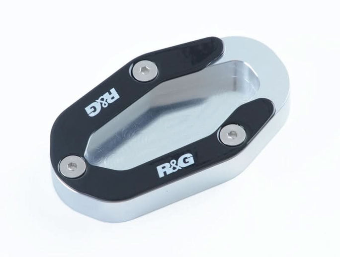 Poszerzenie stopki bocznej R&G Kickstand Shoe zwiększa powierzchnię dolnej części stopki. Dzięki temu motocykl stoi stabilnie na miękkim, a nawet sypkim podłożu – rozgrzanym asfalcie, trawie, ziemi itp. Dolna część poszerzenia wykonana jest z aluminium, co zapobiega korozji po kontakcie z podłożem. Górną wykonano ze stali nierdzewnej. Szybki montaż za pomocą kilku śrub. Zamontowane poszerzenie stopki nie zmniejsza prześwitu pod motocyklem i nie styka się z pracującym łańcuchem napędowym.