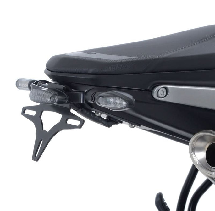 Akcesoryjny uchwyt tablicy rejestracyjnej R&G Fender Eliminator pozwala zrezygnować z fabrycznego, masywnego tylnego błotnika, co mocno poprawia wygląd maszyny. Uchwyt wykonany jest ze stali nierdzewnej i/lub aluminium i malowany proszkowo. Pozwala na zamontowanie tablicy rejestracyjnej blisko ogona motocykla, nadając mu lekką, minimalistyczną linię. W komplecie homologowane oświetlenie LED. Uchwyty R&G Fender Eliminator przeznaczone są do użytku w krajach, w których stosuje się małe tablice rejestracyjne – np. w Wielkiej Brytanii (18 cm wysokości). Dają możliwość montażu oryginalnych lub akcesoryjnych kierunkowskazów. Kolor: czarny.