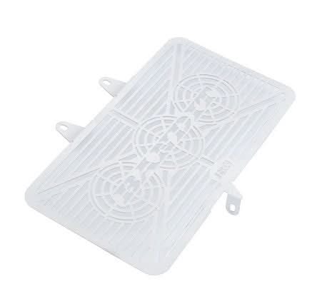 Najwyższej jakości osłona chłodnicy R&G Radiator Guard. Wykonana z jednego arkusza lekkiego aluminium, z wyciętymi laserowo licznymi sześciokątnymi otworami, zapewniającymi niezakłócony przepływ powietrza. Najlepszy stosunek masy do wytrzymałości. Łatwa w montażu, idealnie dopasowana do motocykla, nie wymaga dodatkowych modyfikacji. Malowana proszkowo, odporna na korozję.