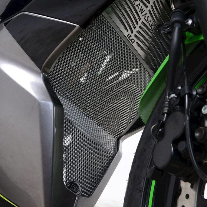 Ażurowa osłona kolektora R&G Downpipe Grille chroni rury wydechu umieszczone przed silnikiem przed uszkodzeniami od lecących spod przedniego koła kamieni, żwiru, zbitych grud ziemi, kawałków drewna i innych rzeczy. Osłona, wykonana z lekkiego i wytrzymałego aluminium, ma formę estetycznej kraty.